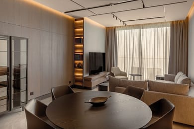 The sunlight that enters through all the areas provides the feeling of cosiness and comfort, as soon as you enter this two-bedroom residence. The elegant interior captures the essence of contemporary Mediterranean living, offering to its residents a secluded place where they can indulge in a truly unique living experience. The Two Bedroom Residence consists of 2 bedrooms, with en-suite bathroom or shower, an open plan kitchen and living room and guests WC. The master bedroom features a walk-in closet. Floors: 8th & 9th - 142sqm